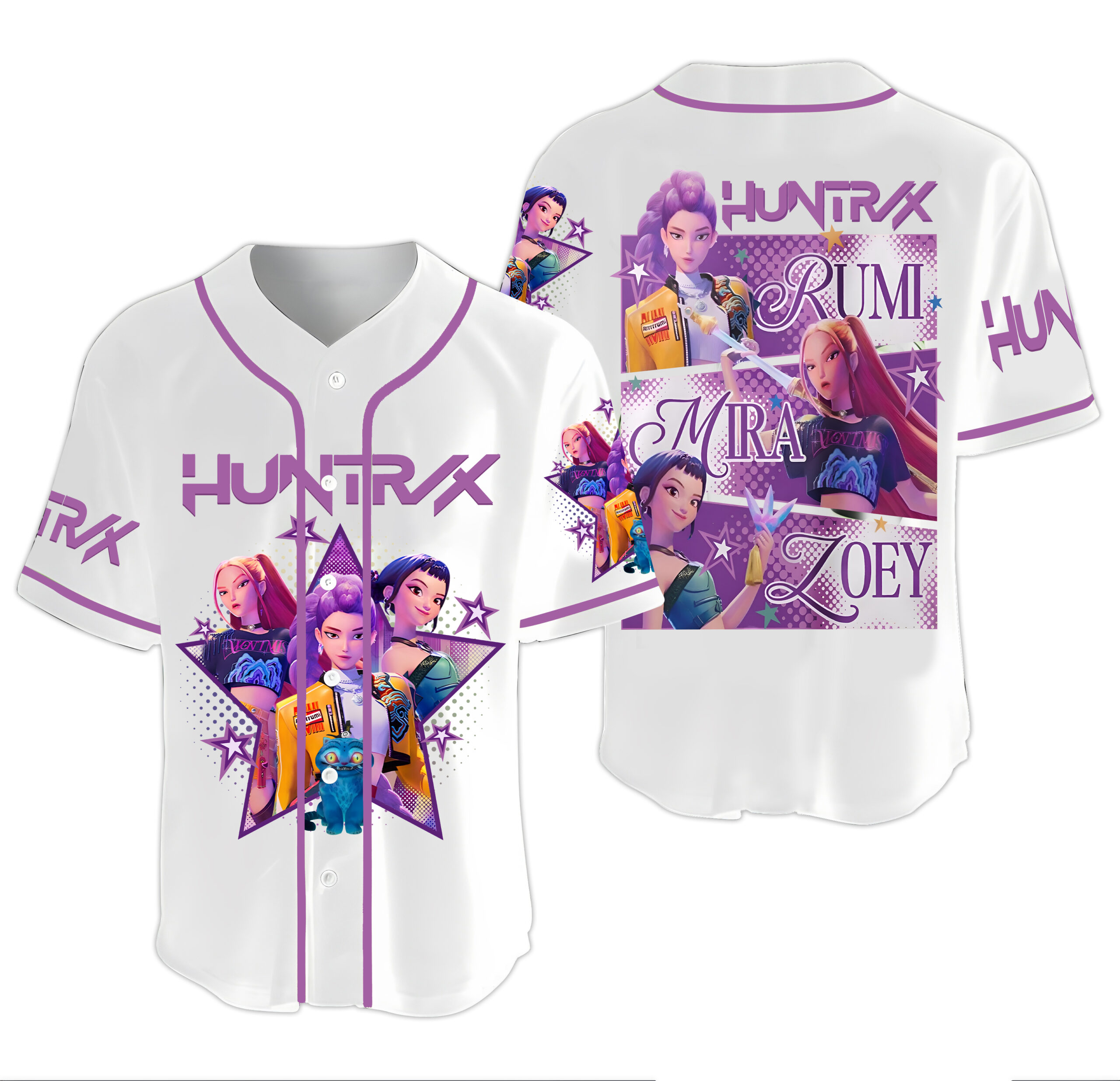 Huntrix Girls Kpop Baseball Jersey, Kpop Demon Hunters Baseball Shirt, Kpop Demon Hunters Merch | Adult & Kids Sizes